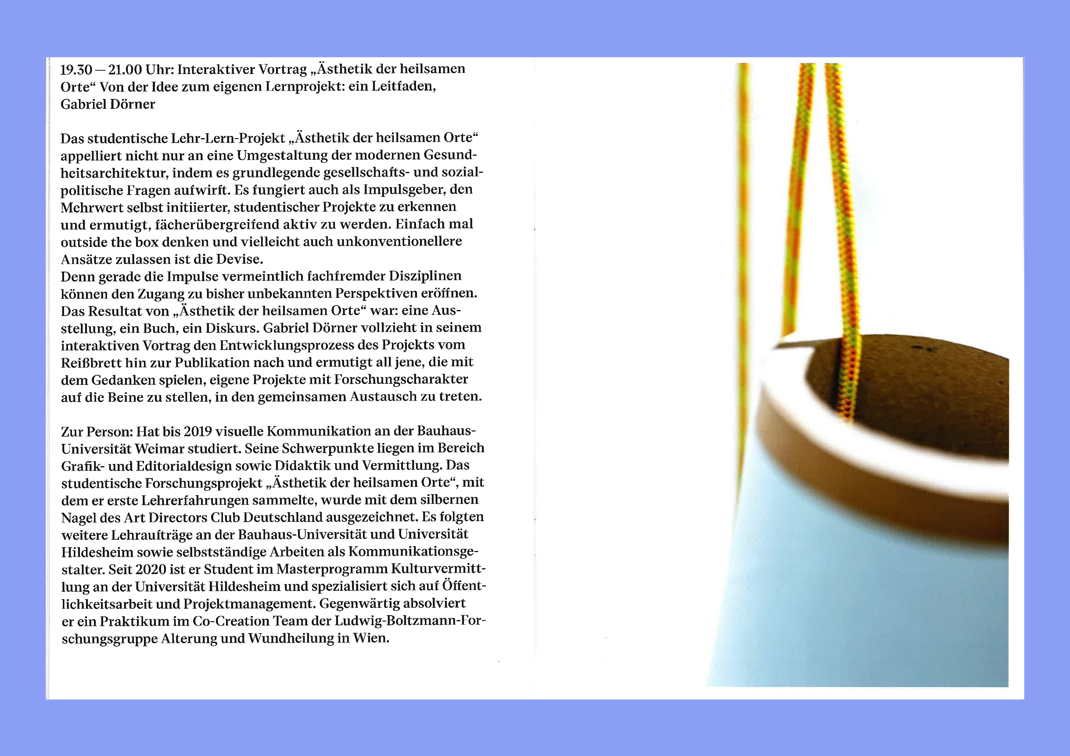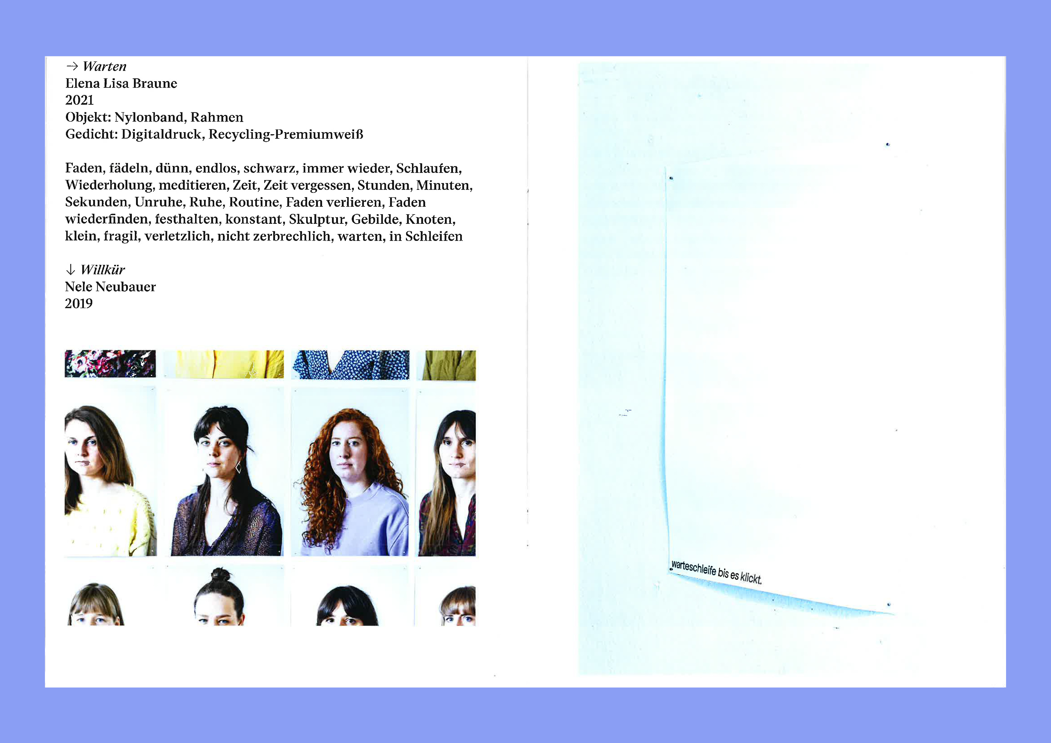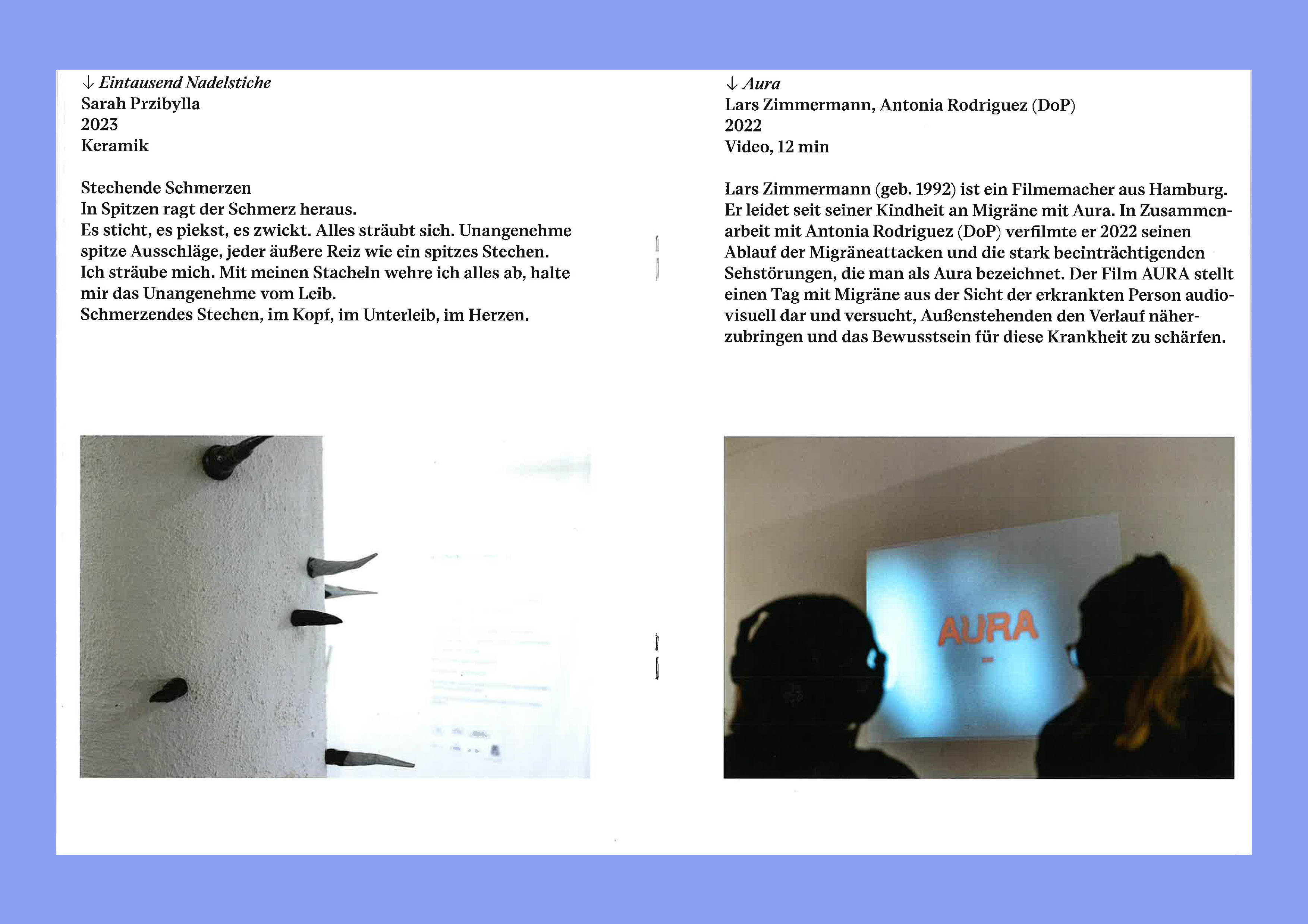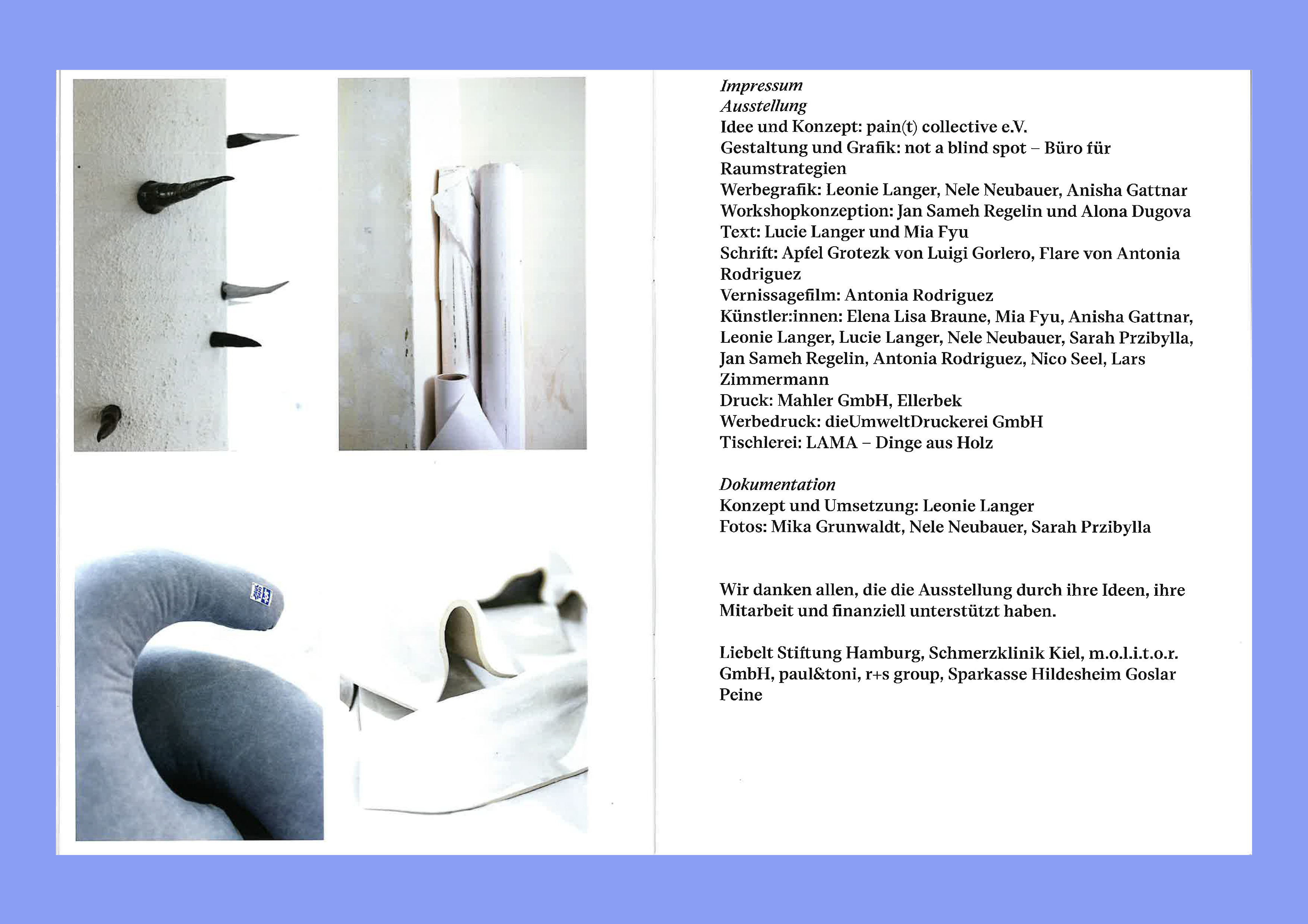 Leonie Langer ist Kommunikationsdesignerin und Raumstrategin aus Hamburg. Ihre Schwerpunkte liegen im Grafikdesign, Ausstellungsgestaltung und Installation. Wie sich in ihren Arbeiten widerspiegelt sind ihre Interessen vielseitig. Sie liebt es immer wieder neue Dinge auszuprobieren und mit verschieden Materialien und Techniken sich Thematiken anzunähern. Seid einiger Zeit, beschäftige ich mich intensiv mit dem Thema Schmerz und der Raumwahrnehmung von Erkrankten.