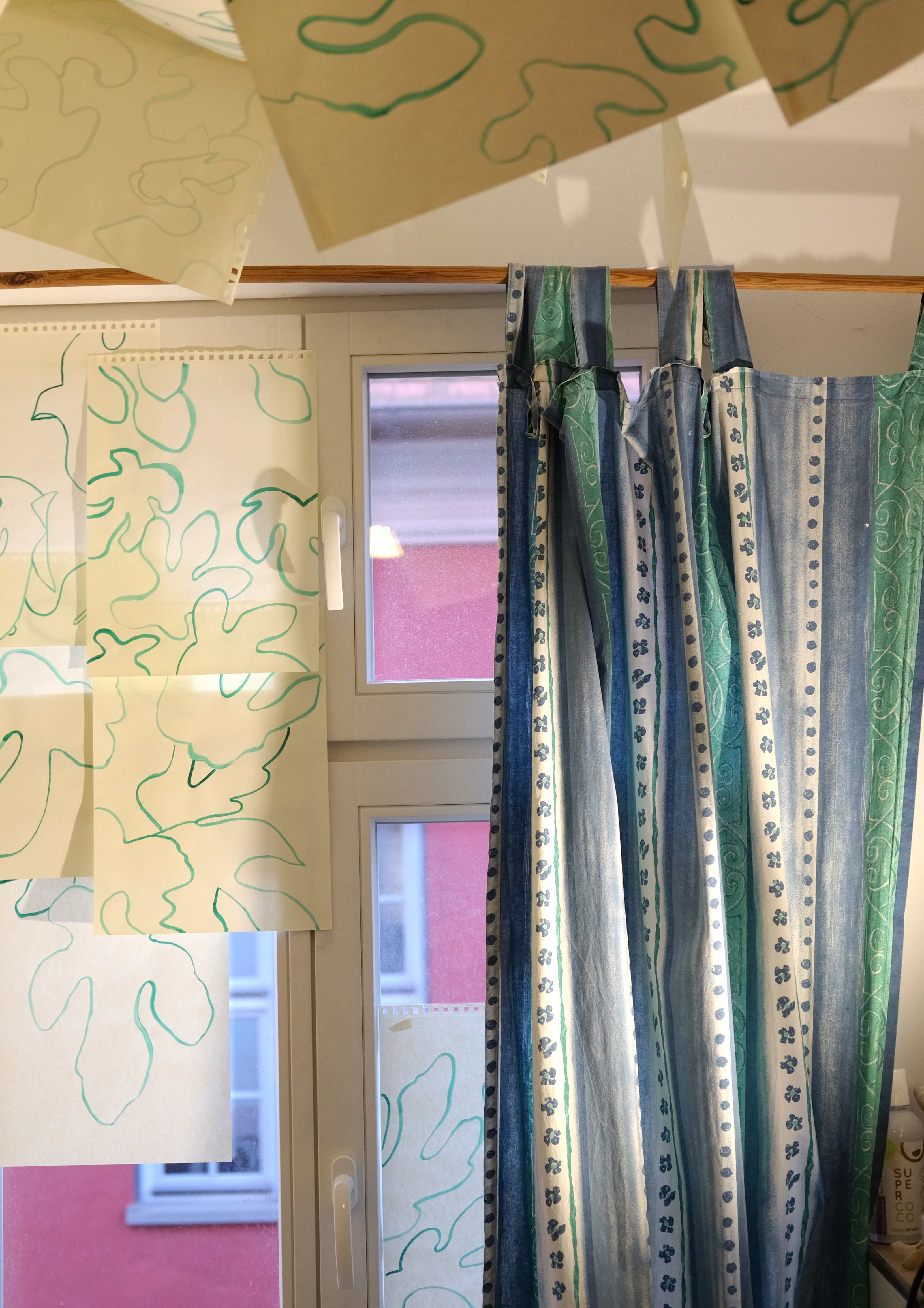 Your healing window ist eine Intervention im Glastreppenhaus der Schmerzklinik Kiel. Integrierte Fensterelemente schützen die Patient:innen vor den direkten Lichteinfall, schützen vor den Blicken von außen und konfrontieren sie mit ihrem Schmerz. Willkürliche Messerschnitte stehen für die Individualität des Schmerzes. 122 Formen versuchen ihren Platz auf den Fensterelementen zu finden, doch keine Form passt so richtig zu der anderen. 122 Schmerzpatient:innen versuchen einen Platz in der Gesellschaft zu finden, doch ecken sie an und passen nirgends so richtig hin. Die Farbe grün wirkt beruhigend auf die Patient:innen.